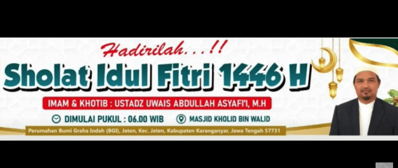 Shalat Idul Fitri 1446 H di Masjid Kholid Bin Walid, dengan imam dan khotib Ustadz Uwais Abdullah Asyafi'i, M.H.